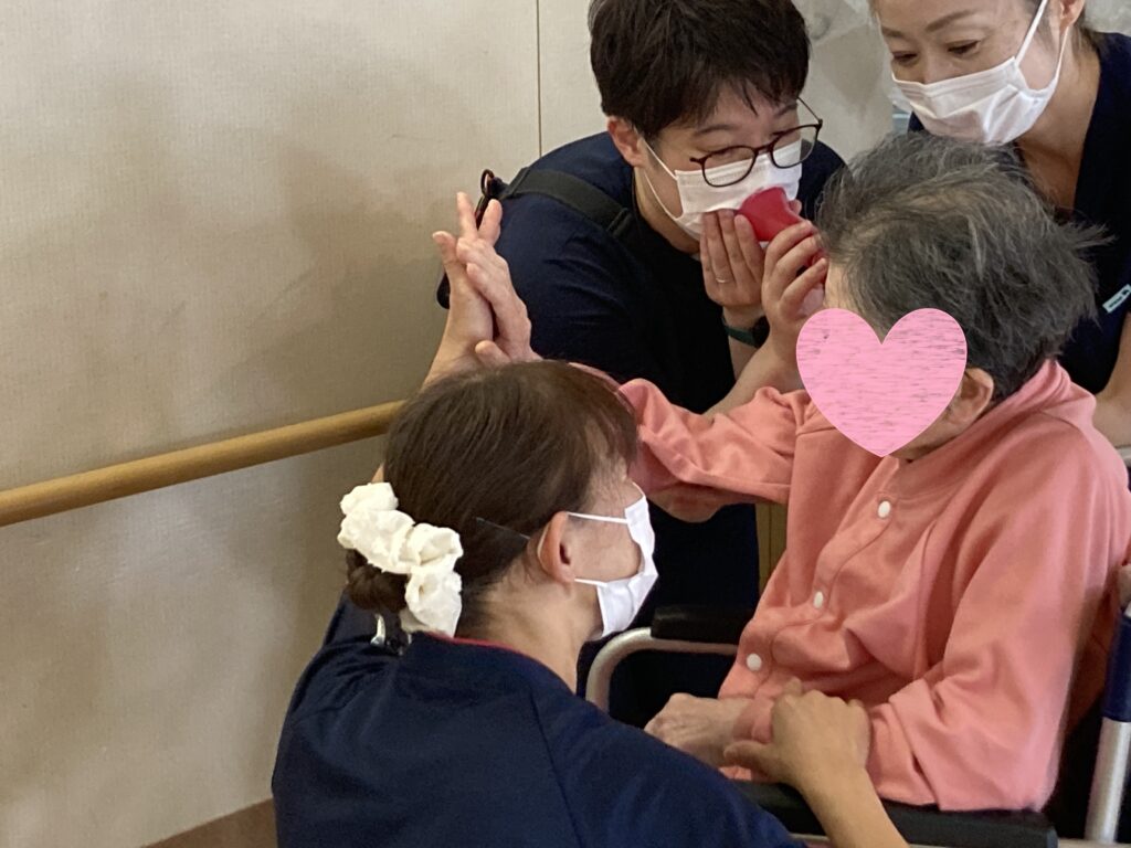 (ユマニチュード®の技術を使って誘導すると、患者さんが自ら立って歩こうとされました)